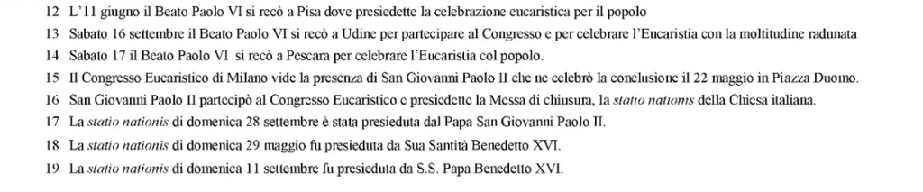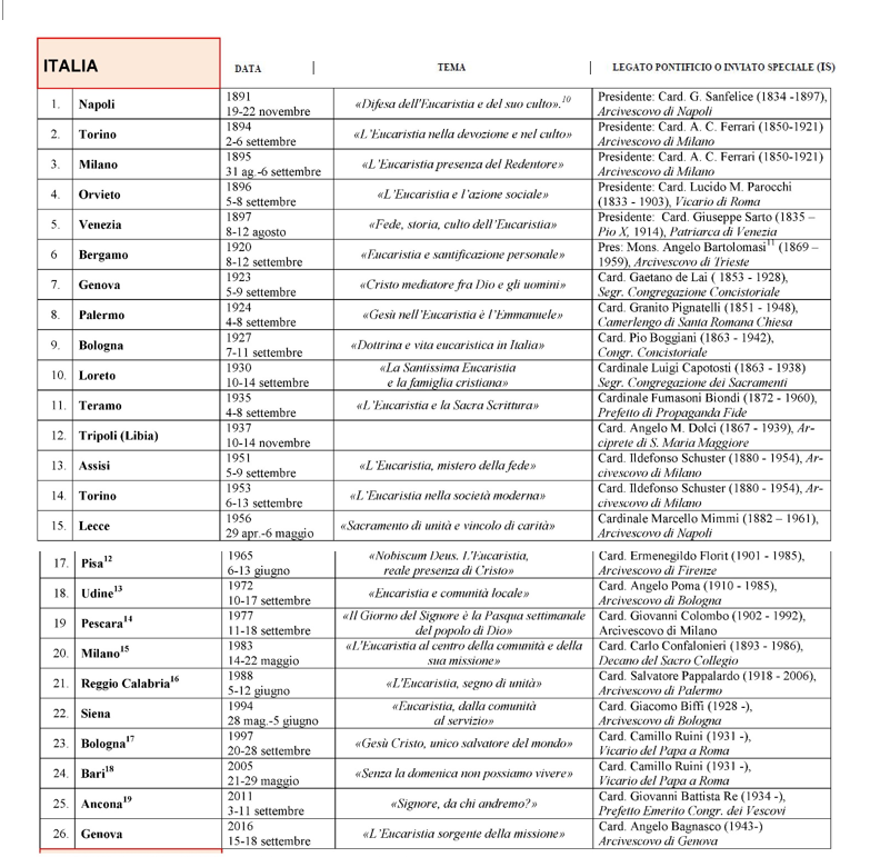 Elenco dei precedenti Congressi Eucaristici in Italia